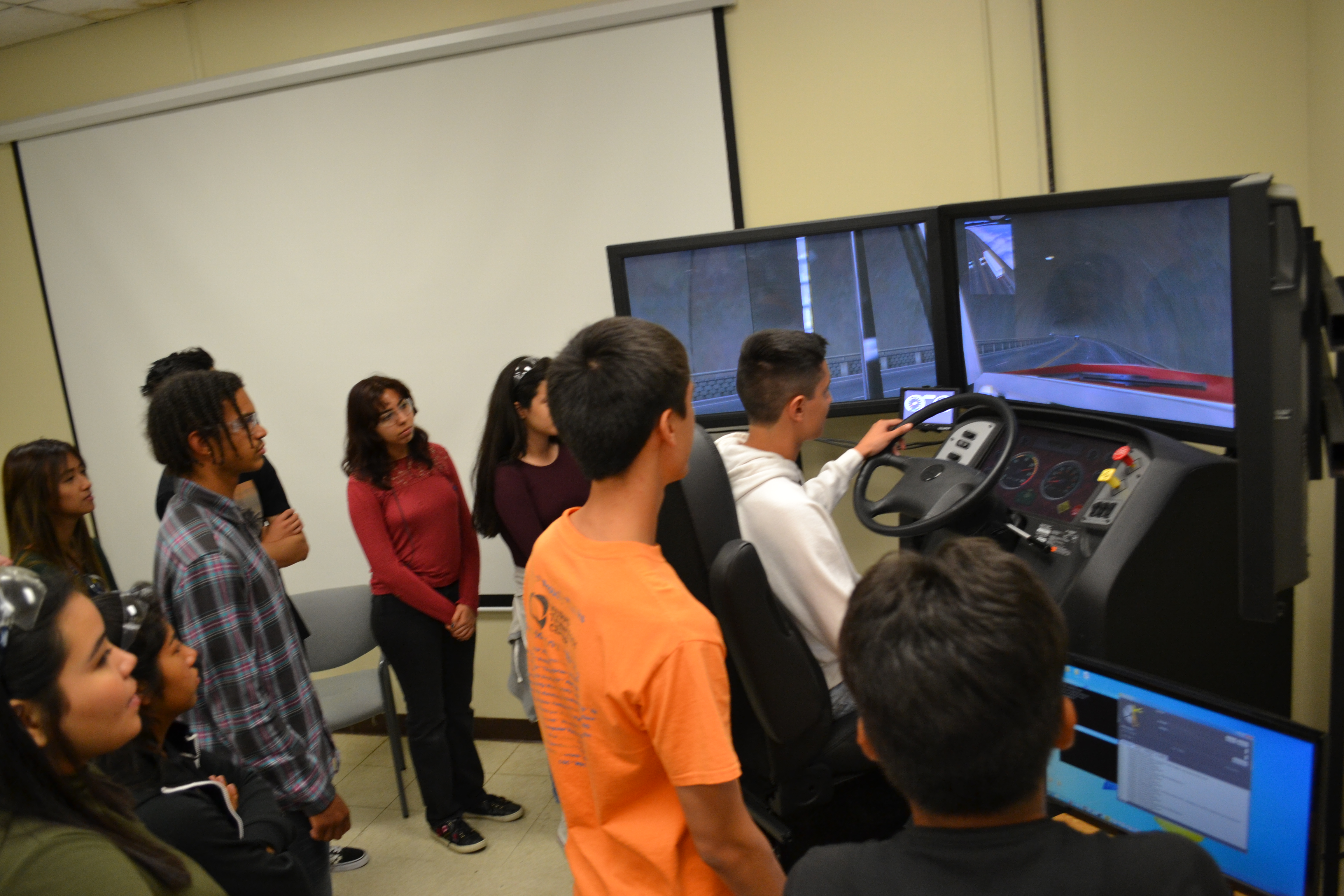 students on simulator